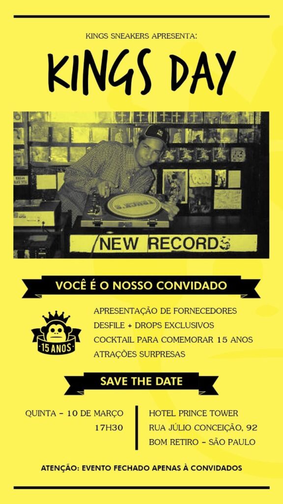 A Kings Sneakers não para de crescer. Com quase 100 lojas abertas em todo o Brasil, a rede de franquias, a maior do segmento streetwear, celebra 15 anos. Para marcar a data, acontecerá o Kings Day.